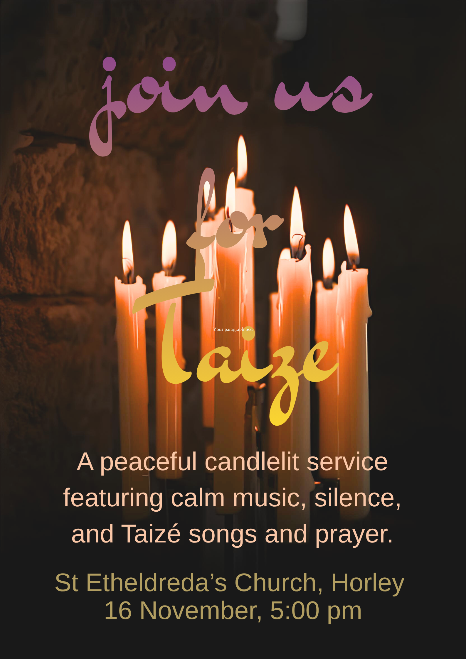 Taizé Service at St Etheldreda’s Church tomorrow (16th Nov) at 5pm