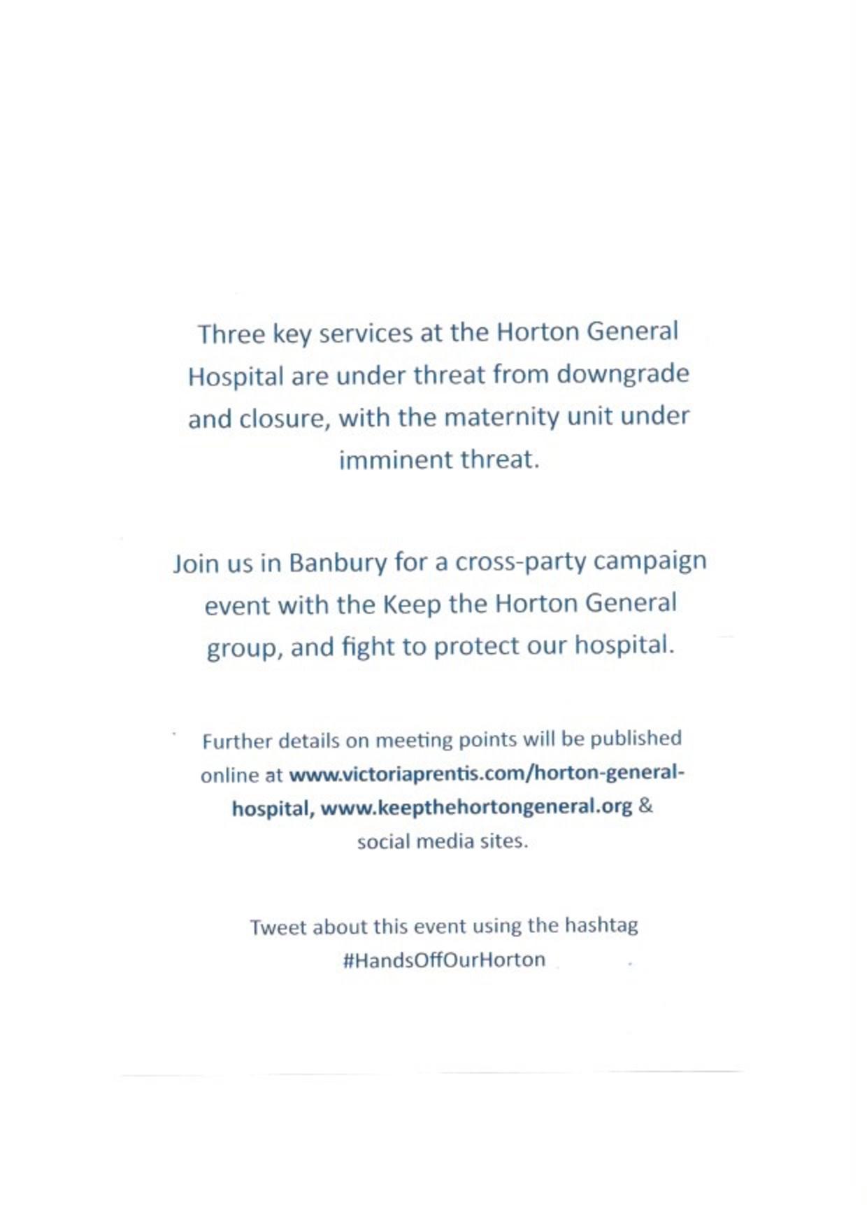 Our Local MP Victoria Prentice is helping to organise this local event in order to save our local hospital. Show your support by joining this event on Sunday.