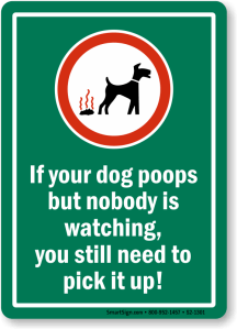For information: ‘If you allow a dog in your charge to foul any area to which the public has access you are committing an offence. The penalty for not clearing up dog fouling can be up to £1000 if the case is dealt with by the magistrates courts, or £50 if the owner is given a fixed penalty notice.’