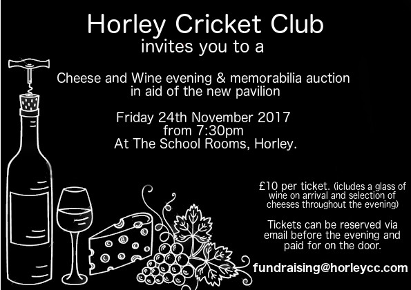 The Horley Cricket Club are are pleased to invite you to a fund raising Cheese and Wine Evening along with a Memorabilia Auction at the Old School on Friday November 24th at 7.30. For a preview of of the lots available at the auction see the catalogue.