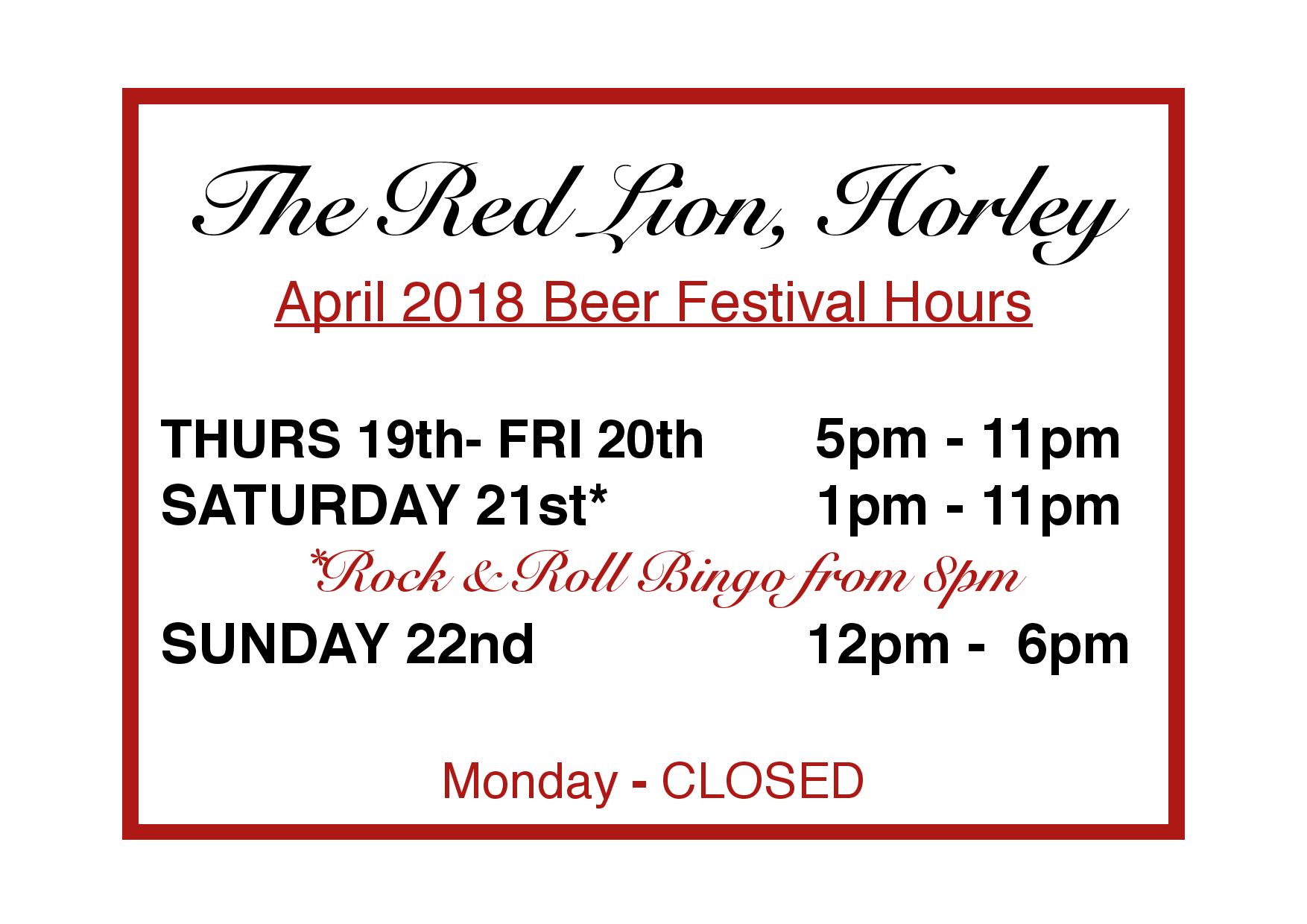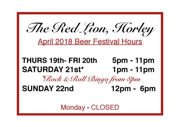 Head for the Red Lion’s Beer Festival 19 – 22 April This year’s beer festival is on from THURSDAY UNTIL SUNDAY at The Red Lion, Horley, winners of CAMRA Pub of the Year for North Oxfordshire 10017. For opening hours and fun events see below. To share : Click to email a link to a friend (Opens in new window) Email Click to share on X (Opens in new window) X Click to share on Facebook (Opens in new window) Facebook Like Loading... Related