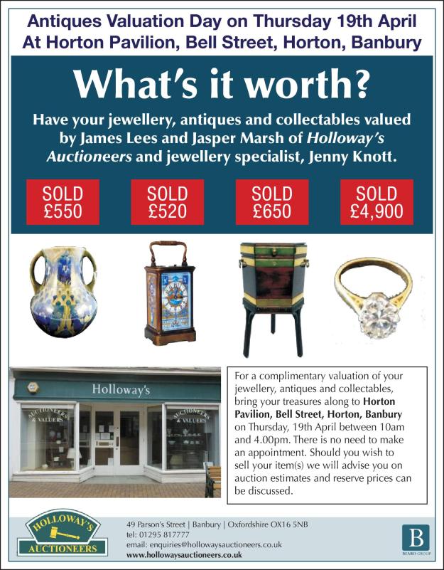 Cash in the Attic? Come Along to an Antiques Valuation Day in Hornton this Thursday… To share : Click to email a link to a friend (Opens in new window) Email Click to share on X (Opens in new window) X Click to share on Facebook (Opens in new window) Facebook Like Loading... Related