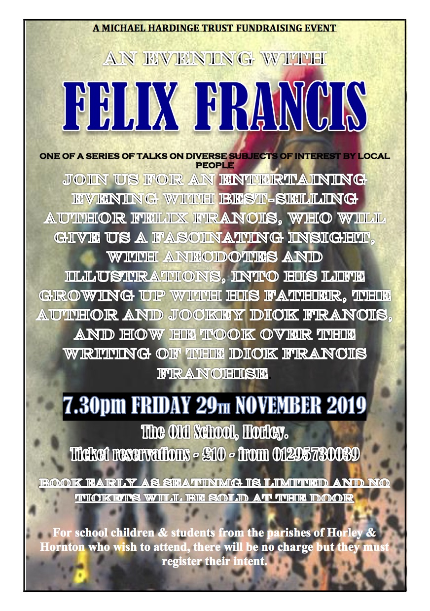 The Next MHT Talk is with Felix Francis This Friday To share : Click to email a link to a friend (Opens in new window) Email Click to share on X (Opens in new window) X Click to share on Facebook (Opens in new window) Facebook Like Loading... Related