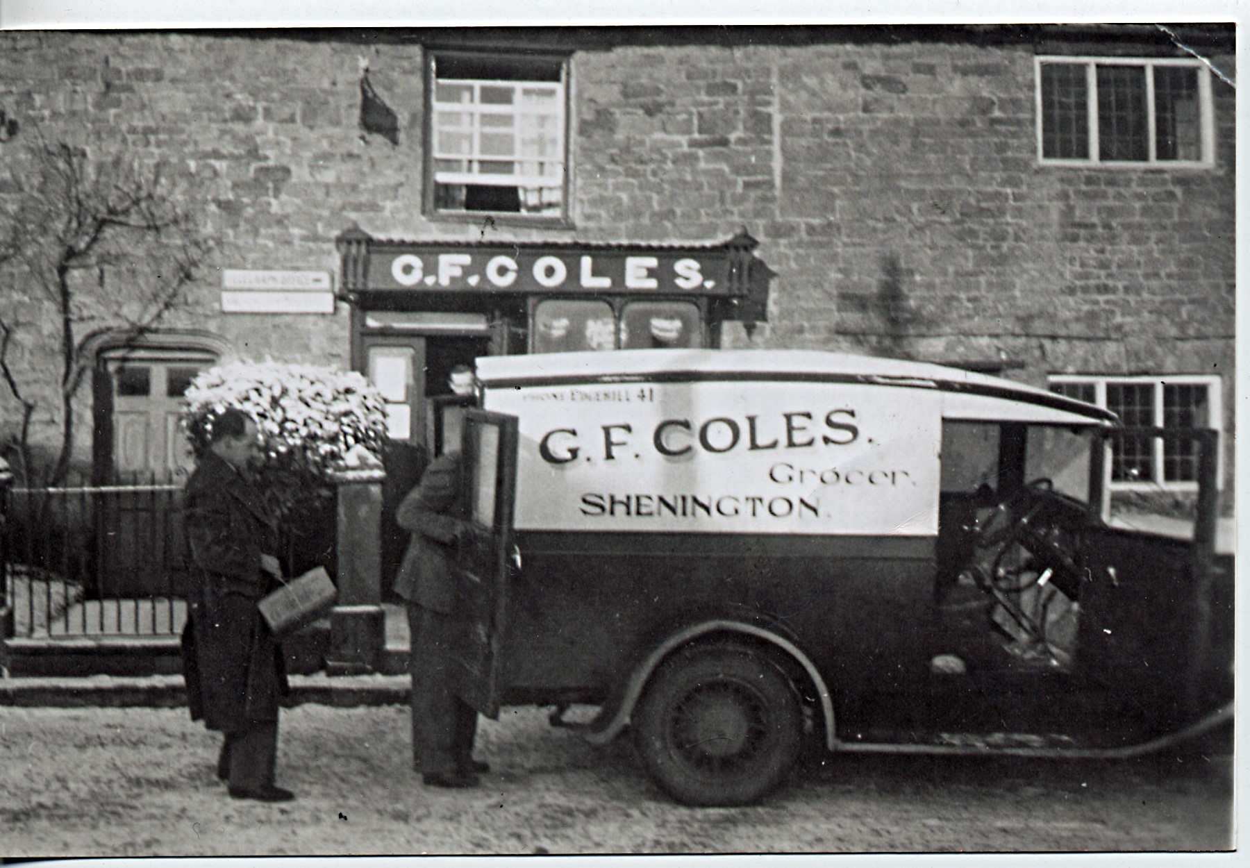 Mr Philip Coles, the grocer, was a constant figure in the village on Tuesdays. He, his brother Ernest and his sister, Mrs E.M. Blakiston-Houston owned the village grocers shop in Shenington, and took their van round several villages collecting orders from each house and then after searching through the shelves stacked with groceries and boxes full of goods on the floor of the van, returning with a wicker basket full of the food. During and in the years following the war the Coles’ business thrived, but suffered with the arrival of supermarkets and their lower prices.