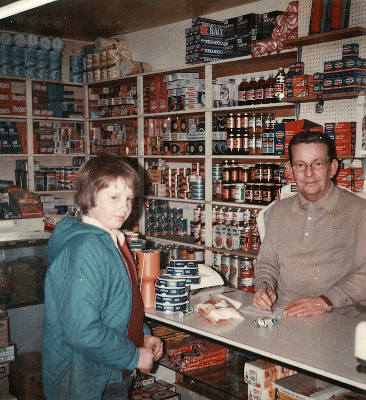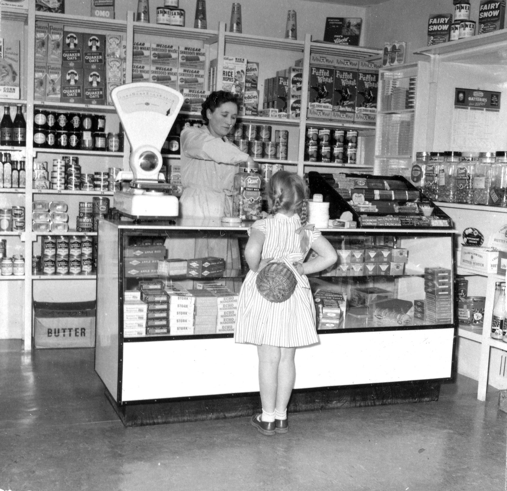 Alice Saunders and Maureen Eeles buy sweets from Mrs Oliver, Photographs by John Saunders