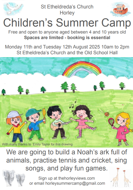 Children’s Summer Camp We are pleased to confirm that the Children’s Summer Camp is going to be running on Monday 11th and Tuesday 12th August this year. Here’s how to sign up: Horley Summer Camp sign-up and more details of what’s planned: To share : Click to email a link to a friend (Opens in new window) Email Click to share on X (Opens in new window) X Click to share on Facebook (Opens in new window) Facebook Like Loading...