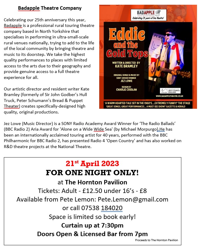 The Hornton Allsorts is the village drama group which has been staging and performing plays, pantomimes and theme nights for many years. See below for more details: