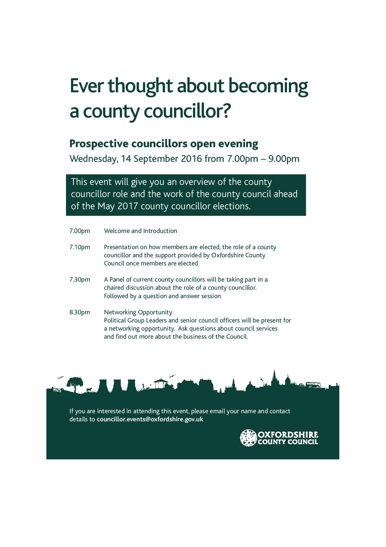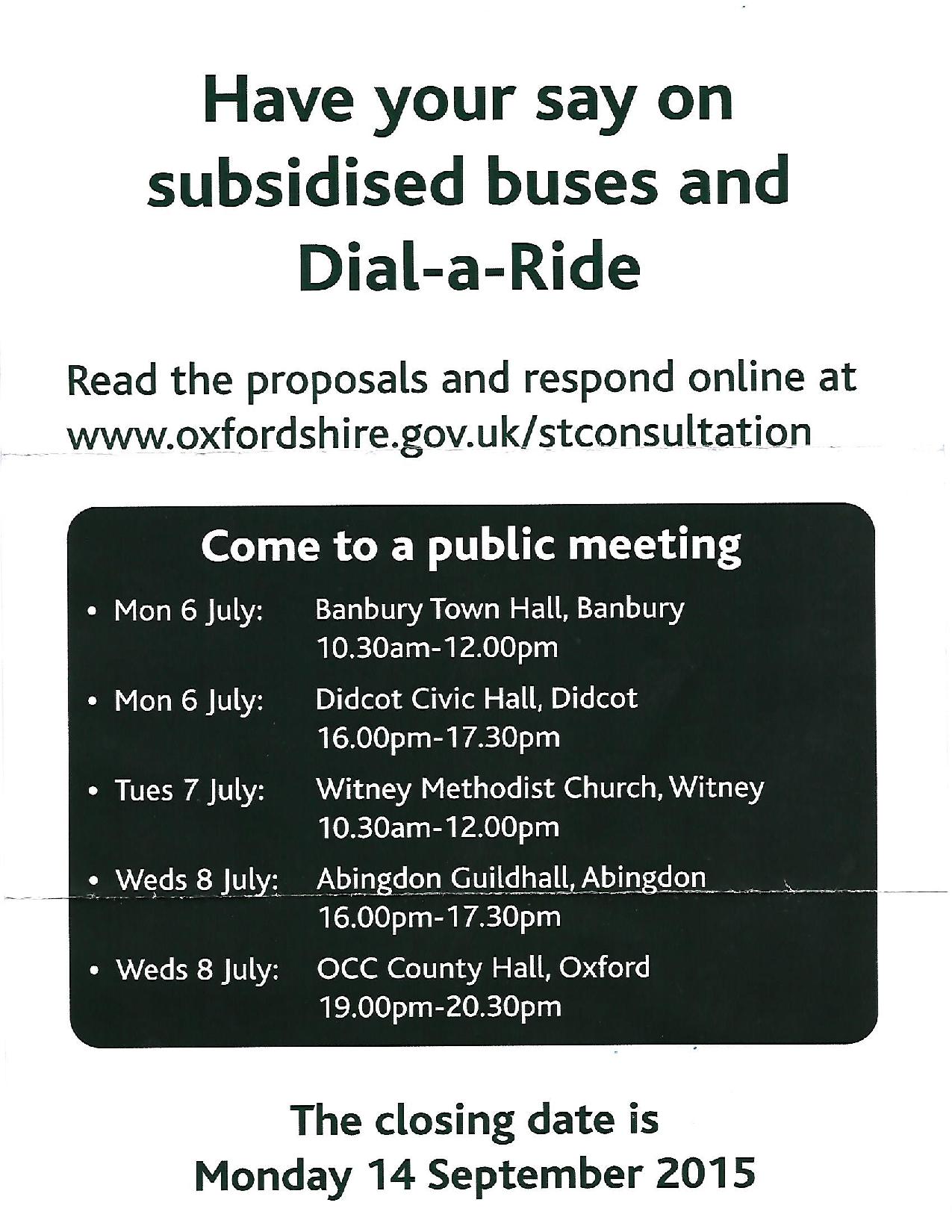 There will be a consultation on these proposals running from 14th July to 11th August 2016. This consultation is open to all Oxfordshire householders to comment on.
