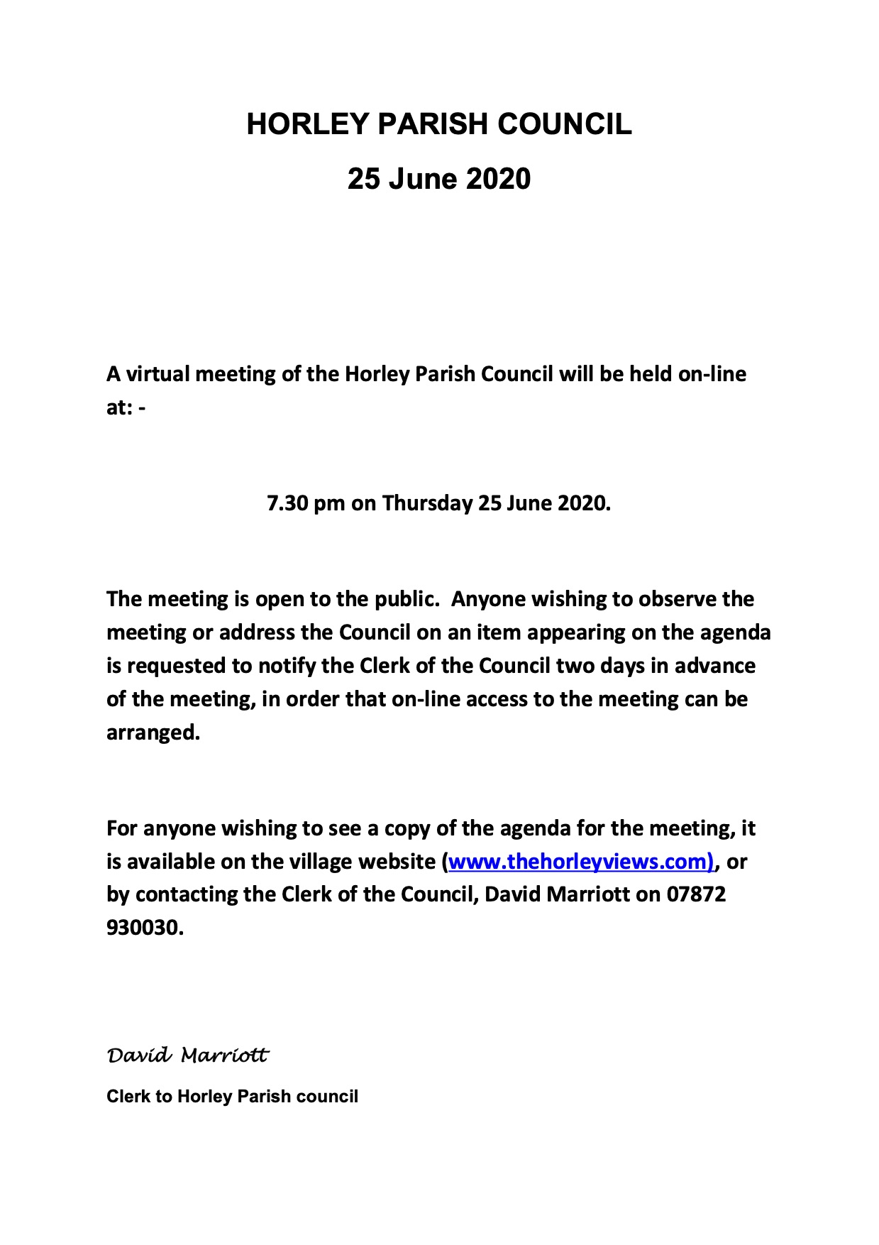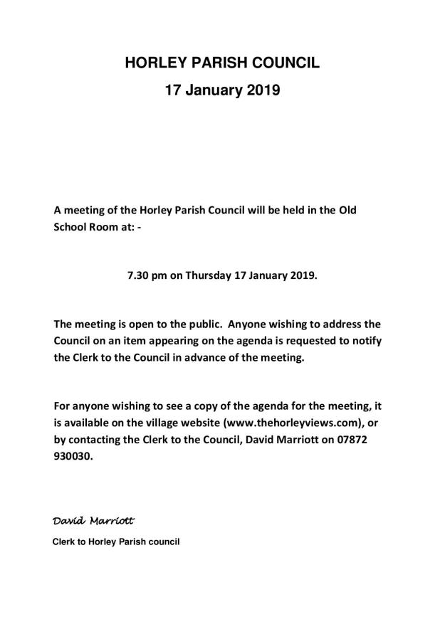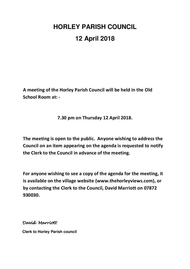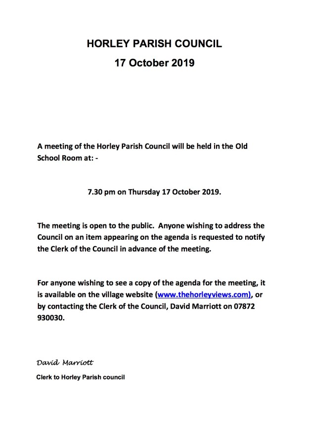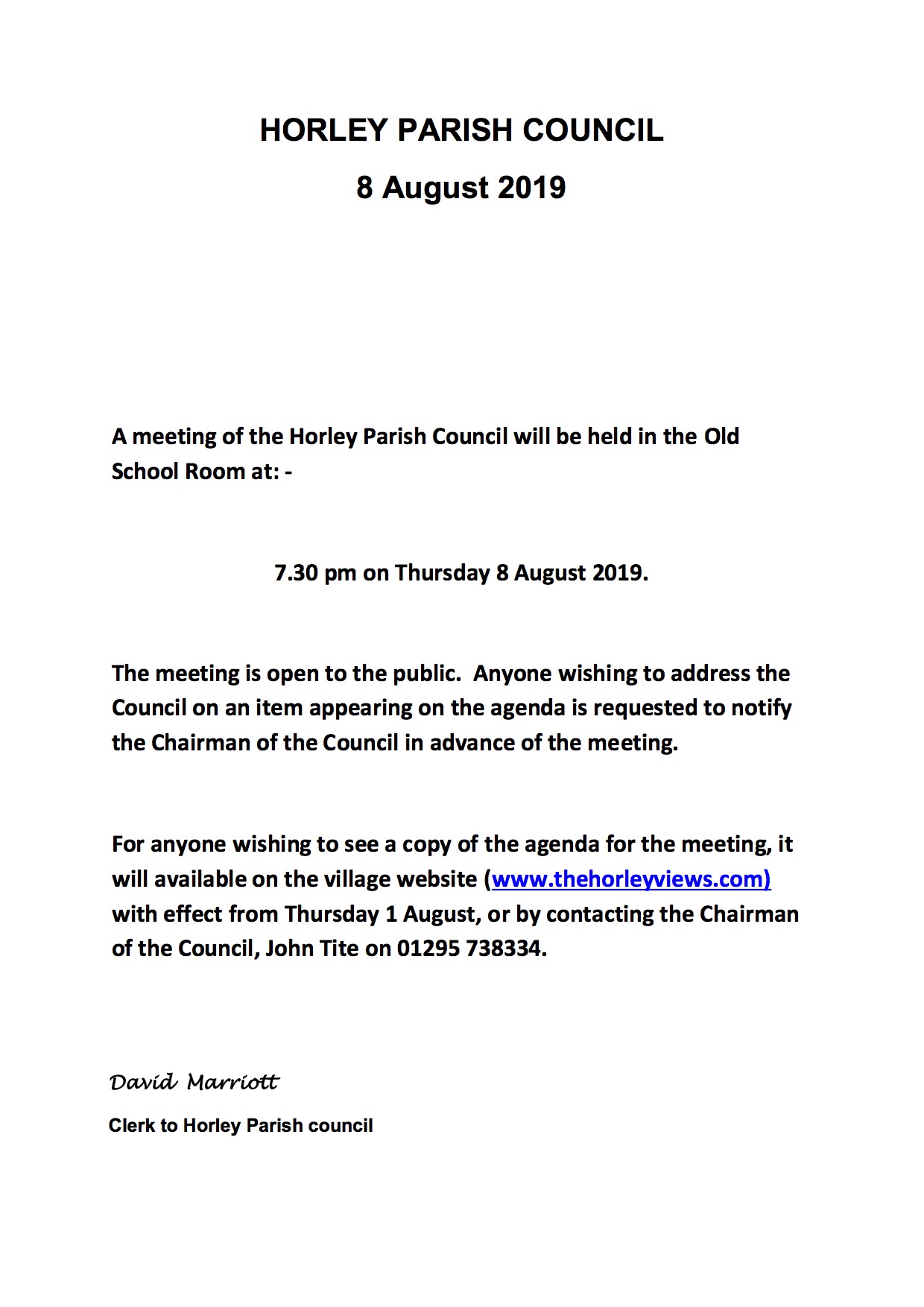 A meeting of the Horley Parish Council will be held in the Old School Room at: