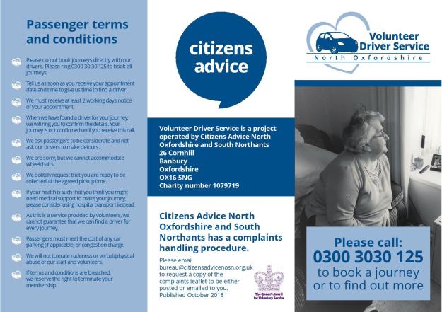 Volunteer Connect is a service which connects people in need of transport with volunteer drivers. It is run by the Citizens Advise Bureau in Banbury from their office in the market place.