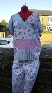 Another fantastic selection of scrubs made by Horley’s NHS sewing bee – Tracey Parsons. They include a very fetching pair of blue gingham bottoms made from a once much cherished sleeping sack which backpacked around Australia with it’s ex owner back in the day!