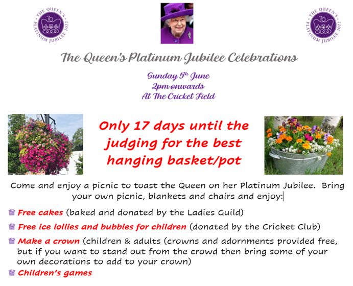Then on Sunday 7th May it’s the village Coronation Lunch at Hadsham Farm.