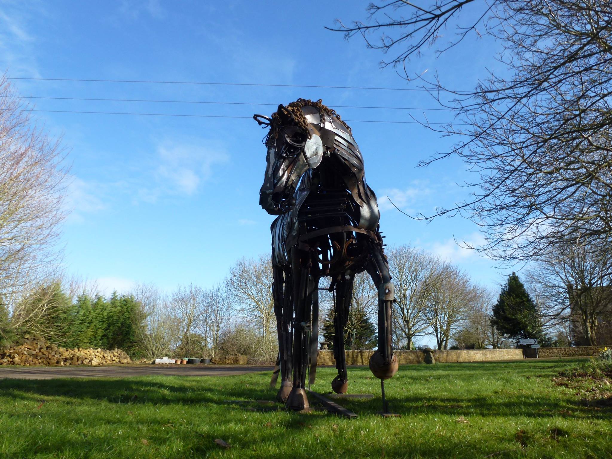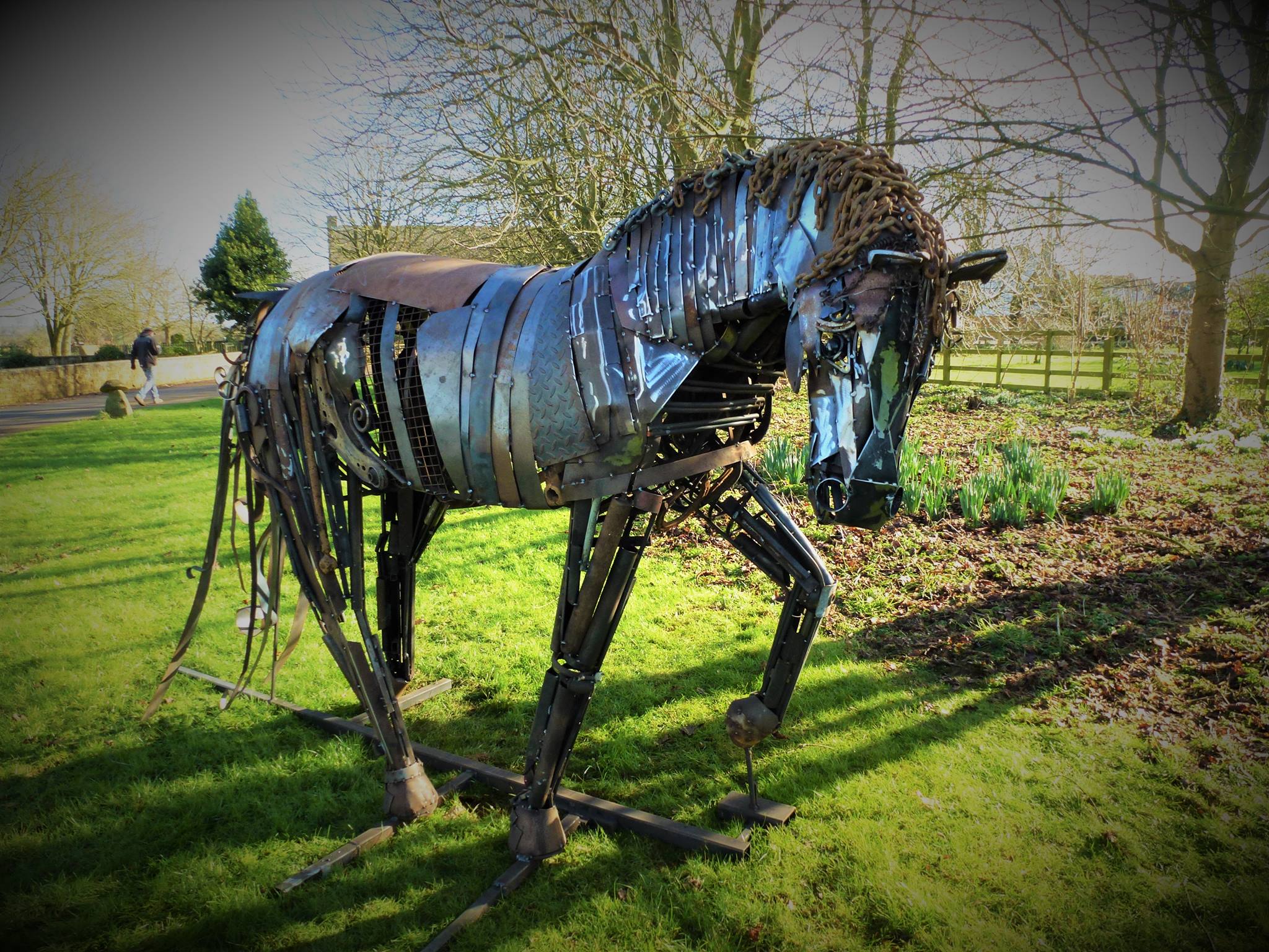 Julia Naysmith has combined her passion for horses with her artistic talents to produce this amazing sculpture. Using only scrap metals Julia has lovingly forged and welded together this life size horse.