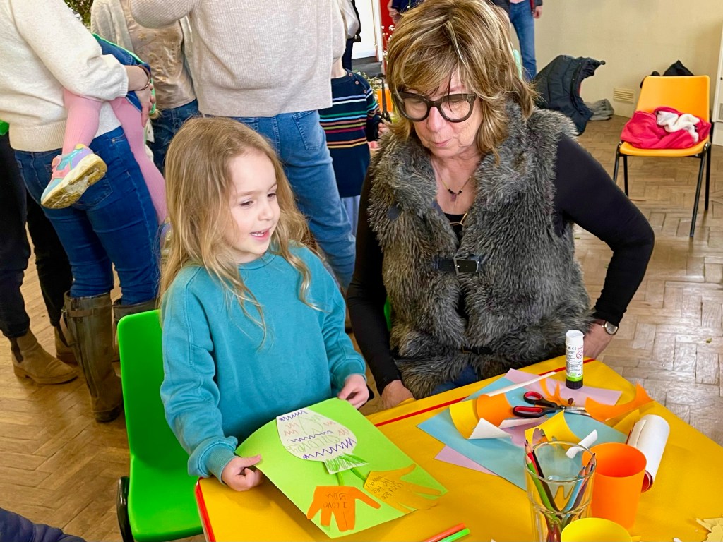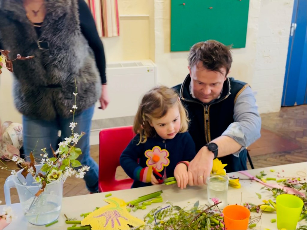 We had a brilliant, fabulous, fun morning getting ready for Mothering Sunday this Saturday at the Old Schoolhouse – Mums, Dads, children and members of St Etheldreda’s church exercised their creative skills making Mother’s Day pictures, posies and badges.