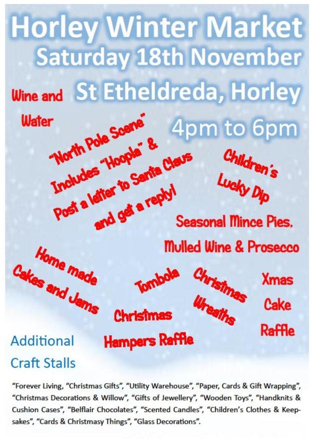 ‘The Horley Ladies Guild would like to thank everyone who came to the Winter Market in the church on Saturday. It was great to see so many people there and we hope you all enjoyed it.